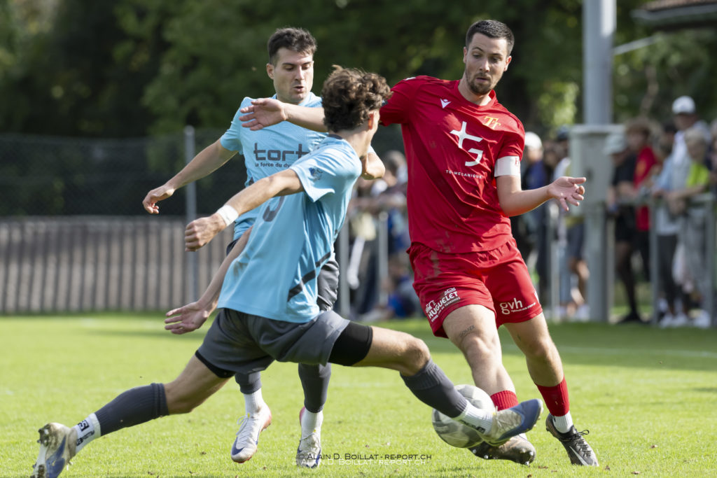 Deux numéros personnels pas piqués des vers, le premier de Téo Assunçao à la 46e minute, le second de Stéphane Menanga peu après l’heure de jeu, ont permis à notre 1re équipe de comptabiliser trois points précieux (victoire 2-0, mi-temps 0-0), ce samedi 1er novembre à Koppigen. Les nôtres ont eu le grand avantage d’évoluer en supériorité numérique durant l’intégralité ou presque de la rencontre, suite à l’expulsion aussi précoce que justifiée du défenseur central Jan Trüssel, auteur à la 3e d’une faute de dernier recours sur Cyril Brunner, lequel filait seul au but après avoir été mis sur orbite par une subtile déviation dudit Stéphane.